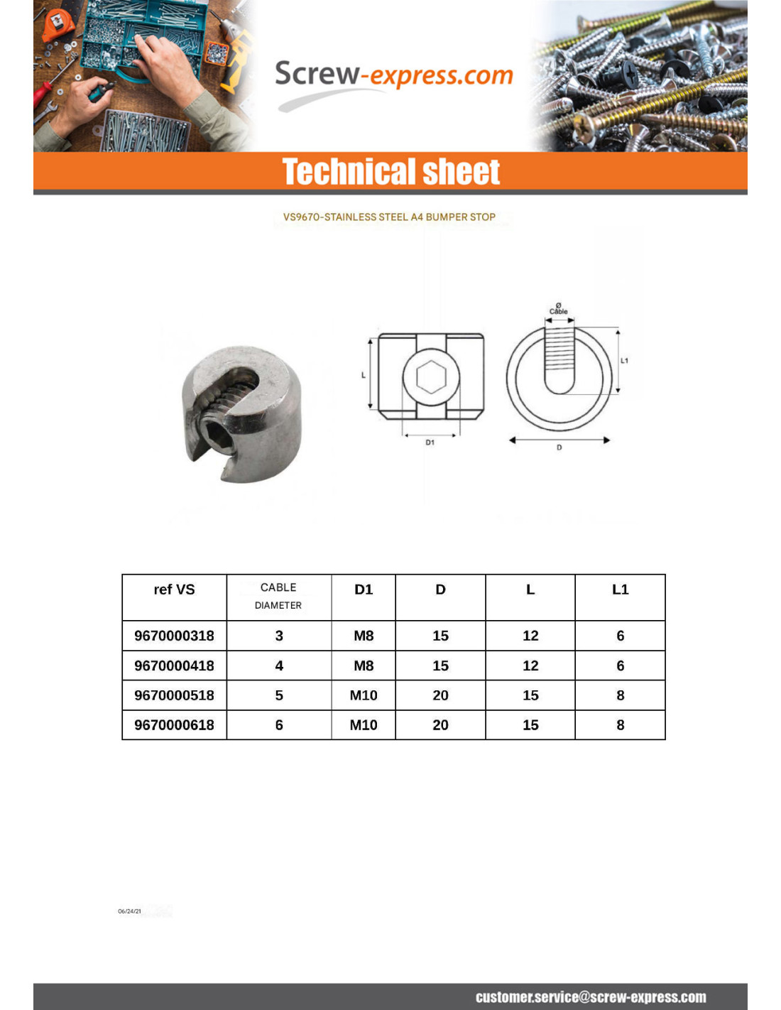 STOP BUMPER Stainless Steel A4 Linch Pin Wire Rope Of Diameter 6 Other Reference : 3663072344709