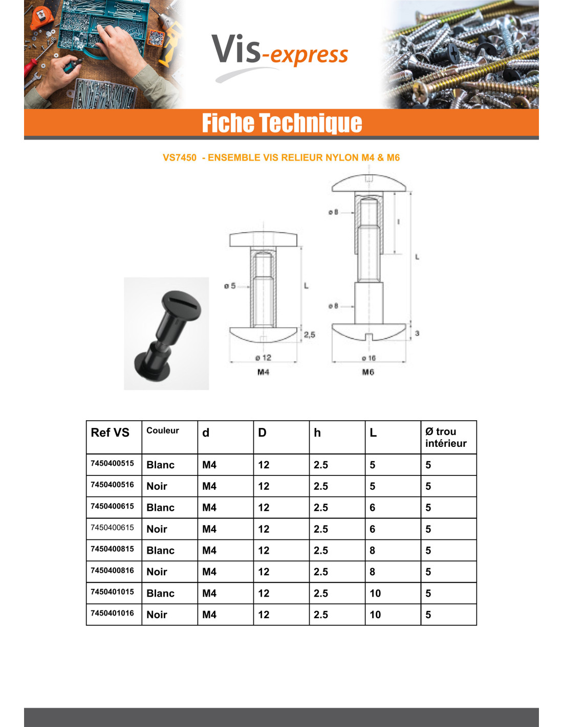Binding Screw M6X85 Diameter Tube 8 white nylon 2 pieces Male/Female