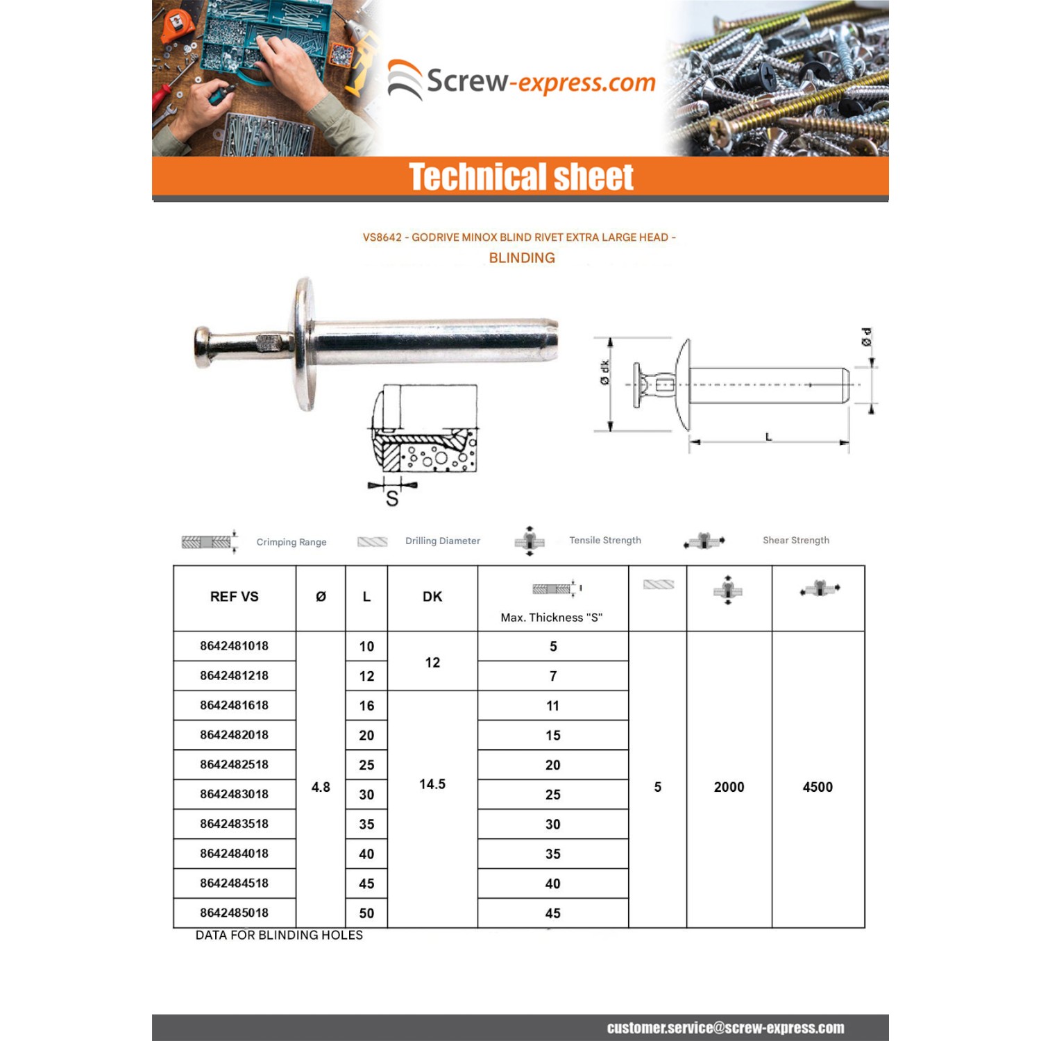 Blind Rivet GODRIVE MINOX Extra Large Head blind 4.8X35
