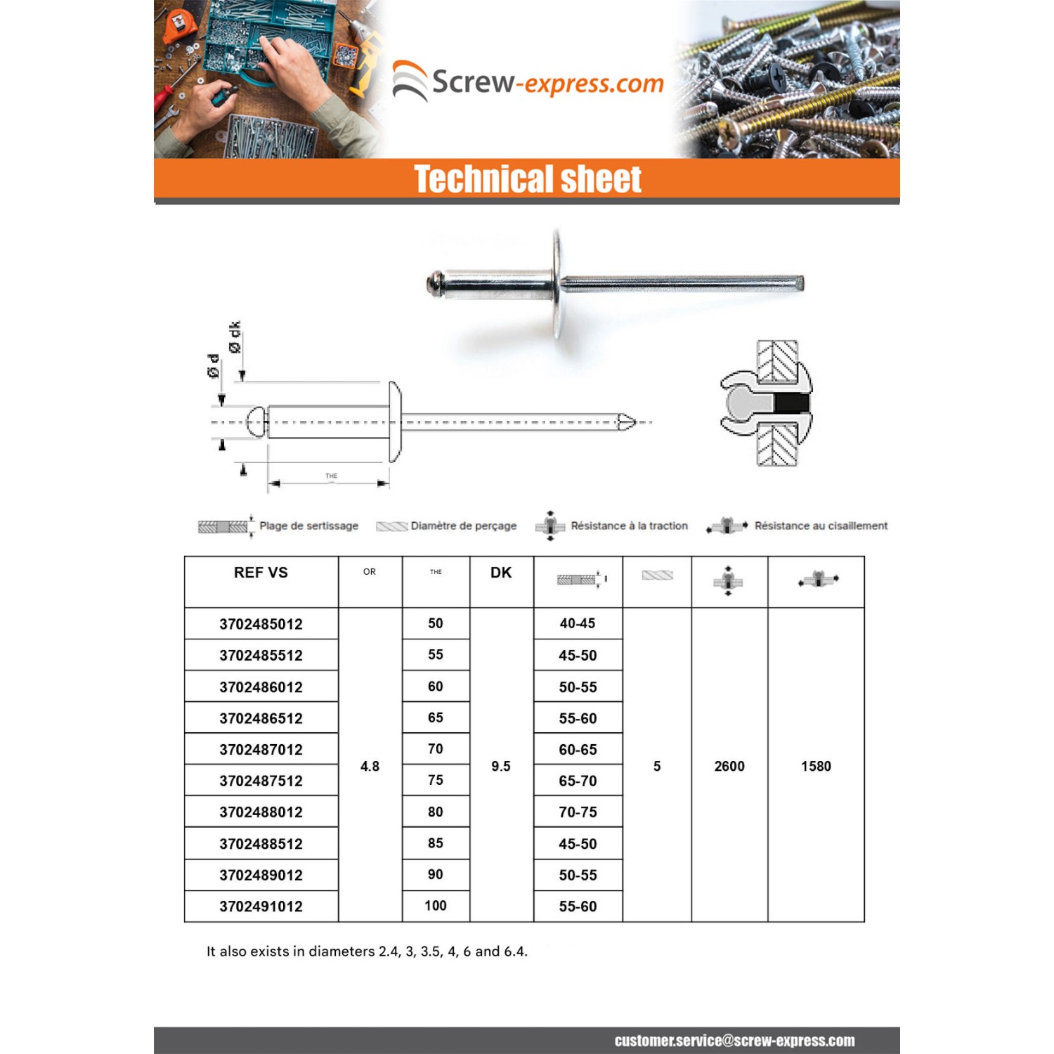 Blind rivets Aluminium Stahlgewinde 6X10 Thickness Of Panel 2 to 4 Flat Head ALX