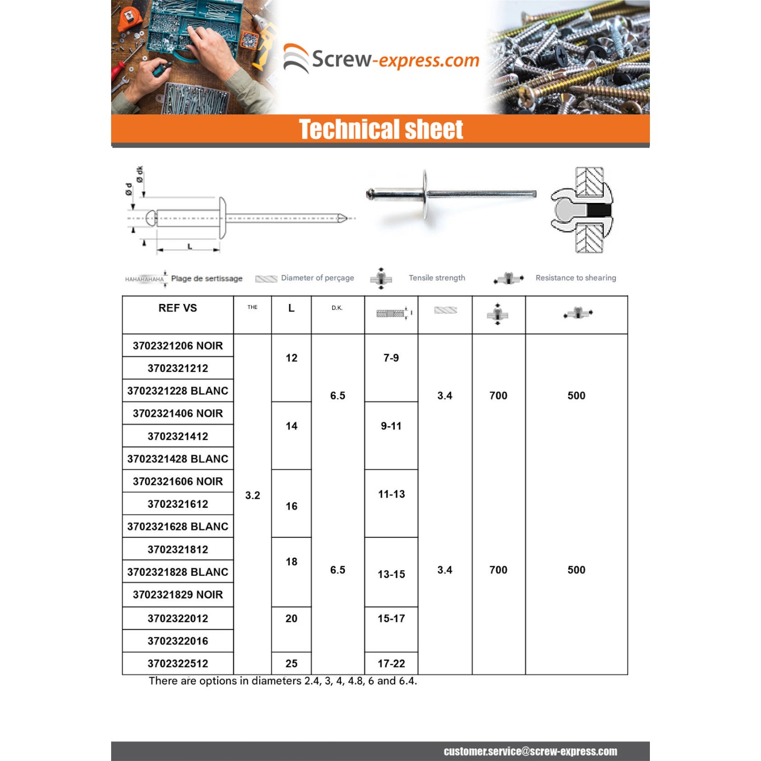 Blind rivets Aluminium Stahlgewinde 3.2X25 Thickness Of Panel 17 to 22 Flat Head ALX