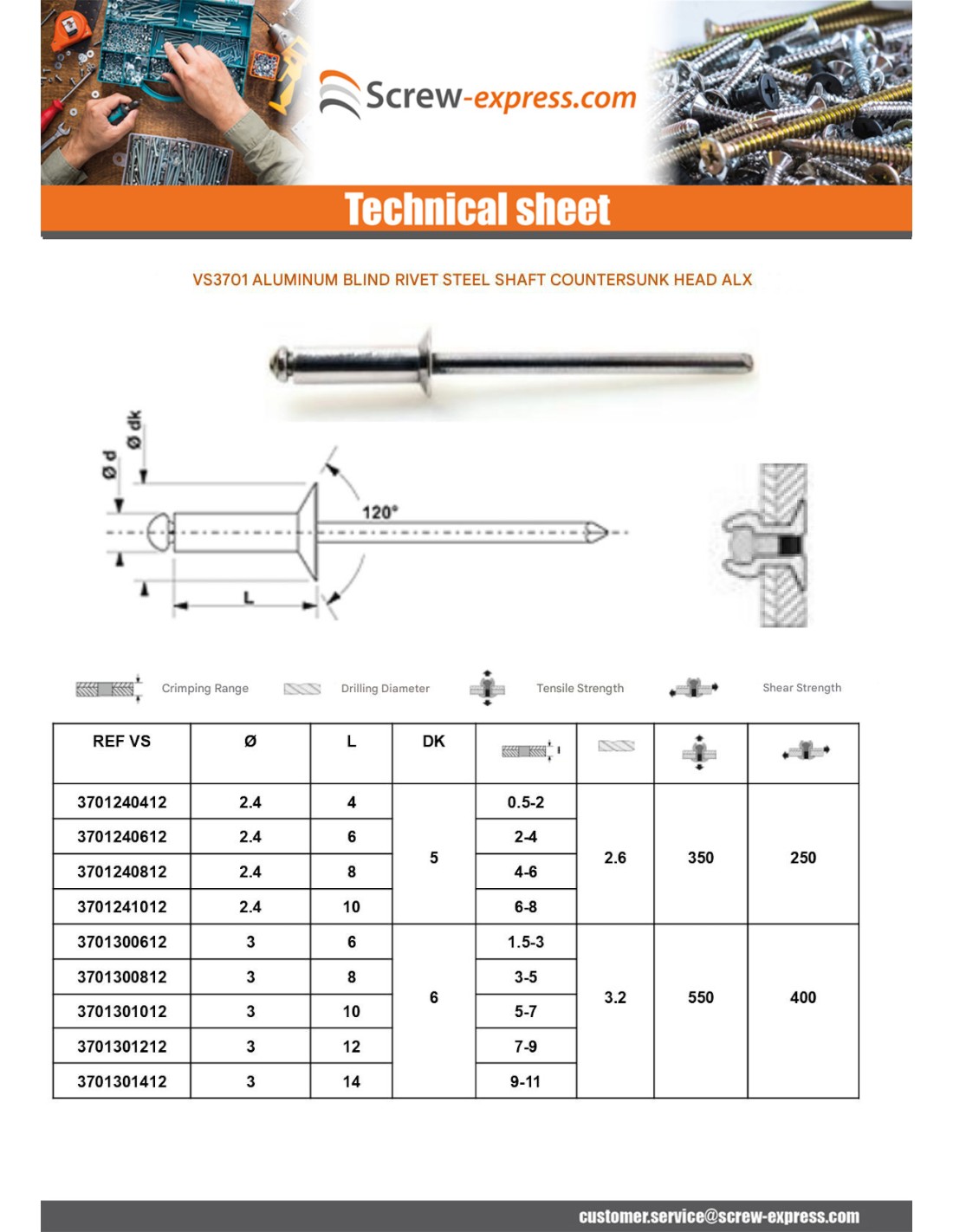 Blind rivets Aluminium Stahlgewinde 3.2X10 Thickness Of Panel 5 to 7 Countersunk Head ALX