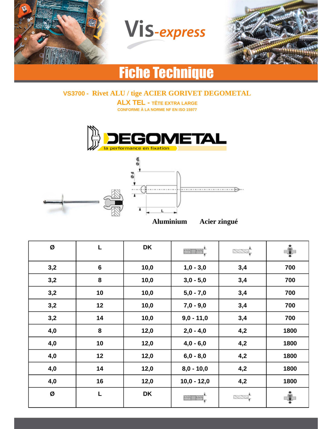 Blind rivets Aluminium Stahlgewinde Extra Large Head ALX