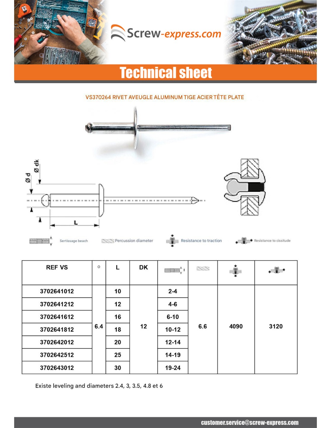 Blind rivets Aluminium Stahlgewinde 4.8X16 Thickness Of Panel 9 to 11 Flat Head ALX