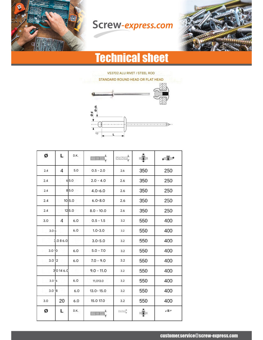 Blind rivets Aluminium Stahlgewinde 4X16 Thickness Of Panel 10 For 12 Flat Head...