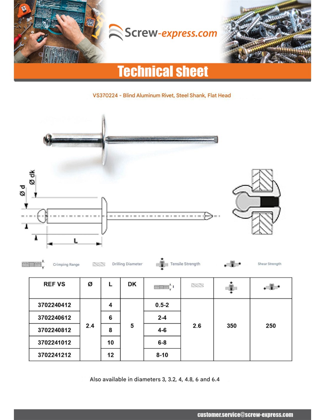 Blind rivets Aluminium Stahlgewinde Flat Head ALX