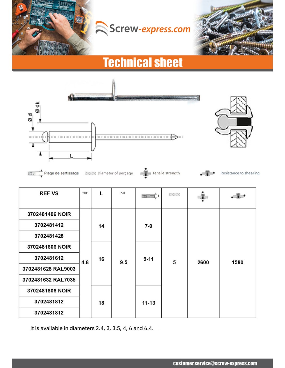 Blind rivets Aluminium Stahlgewinde 3.2X20 Thickness Of Panel 15 to 17 Flat Head ALX