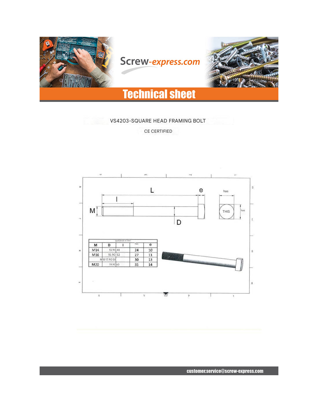 BOLT WITH NUT CARPENTER SQUARE HEAD