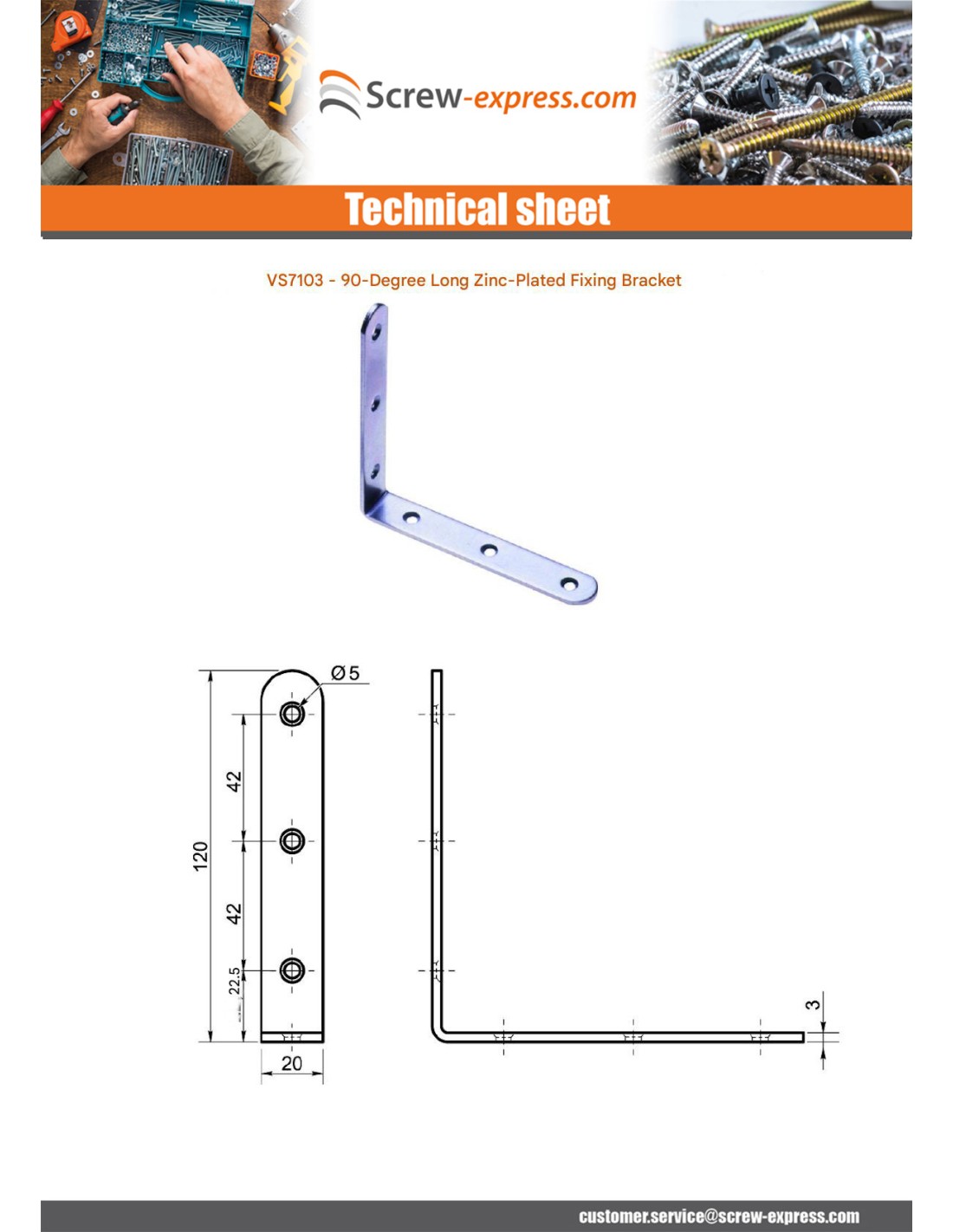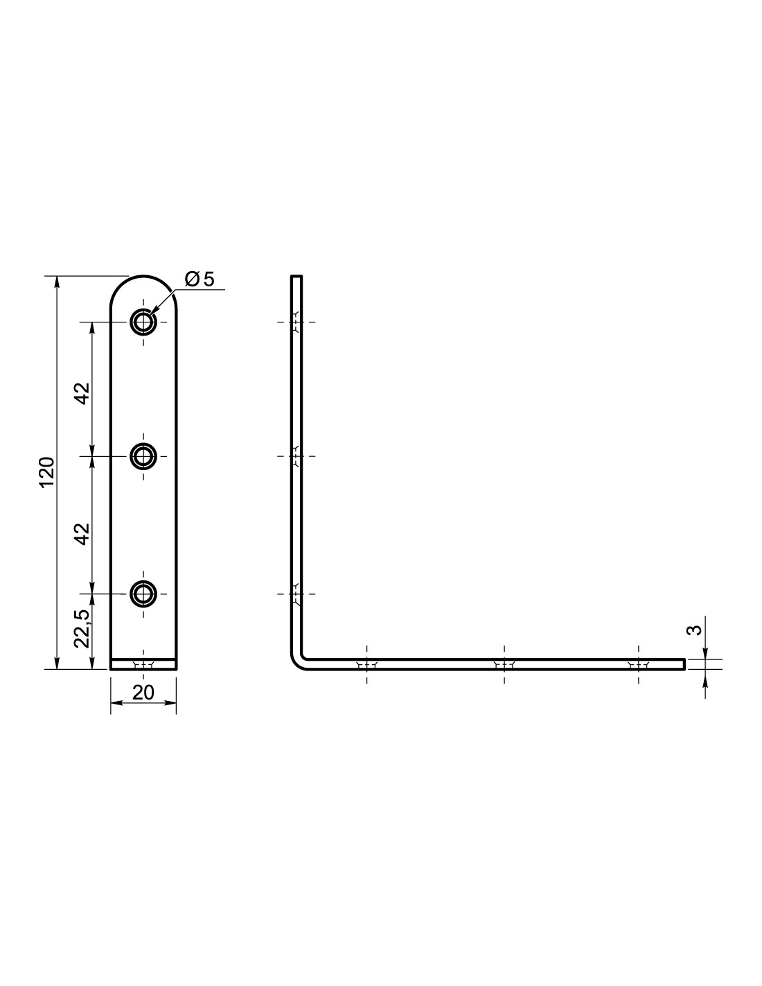 Mounting bracket Long 90 120X20X3 Zinc Plated