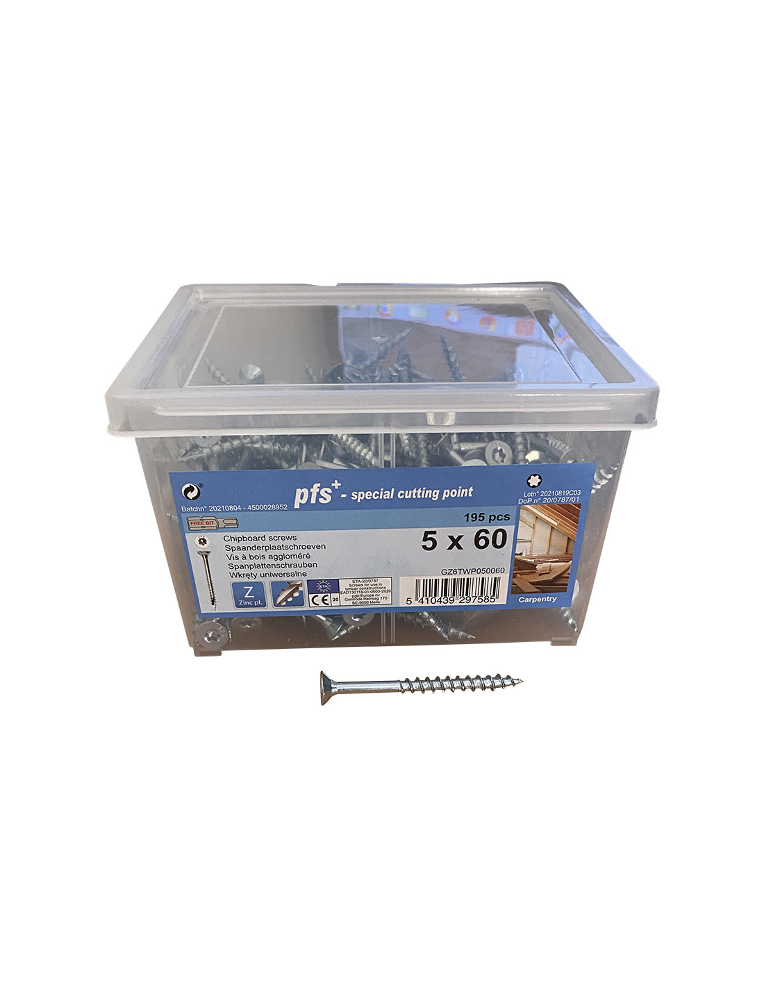 Bucket 195 Chipboard Screws 5X60 Countersunk Head T25 cut Type 17 Drilling Point Zinc Plated Other Reference : 3663072494510