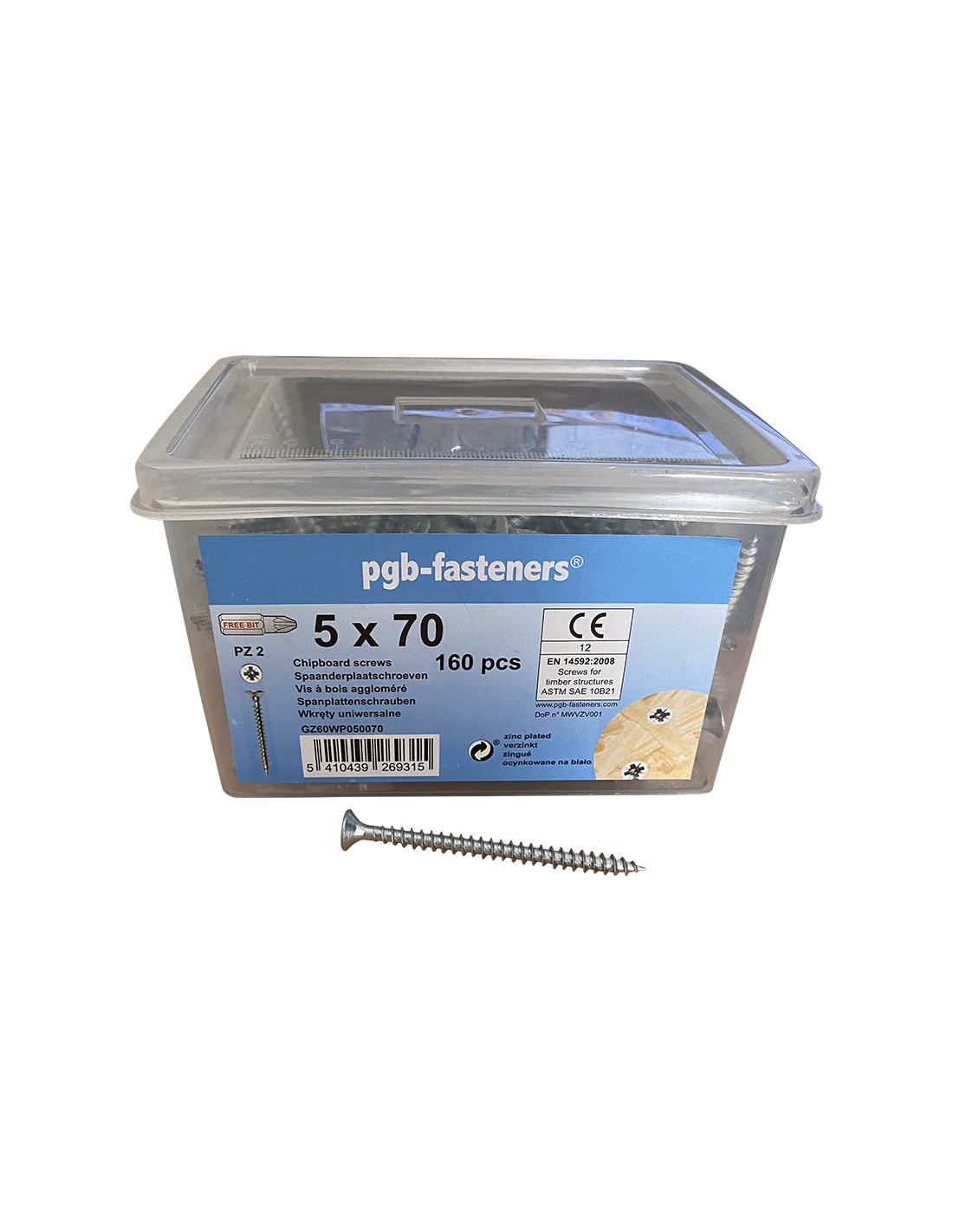 Bucket Of 140 Chipboard Screws 5X80 Countersunk Head Pozi 2 Zinc Plated