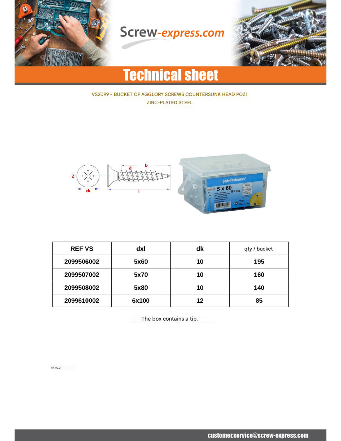 Bucket CHIPBOARD SCREWS TET COUNTERSUNK TORX ZINGUE