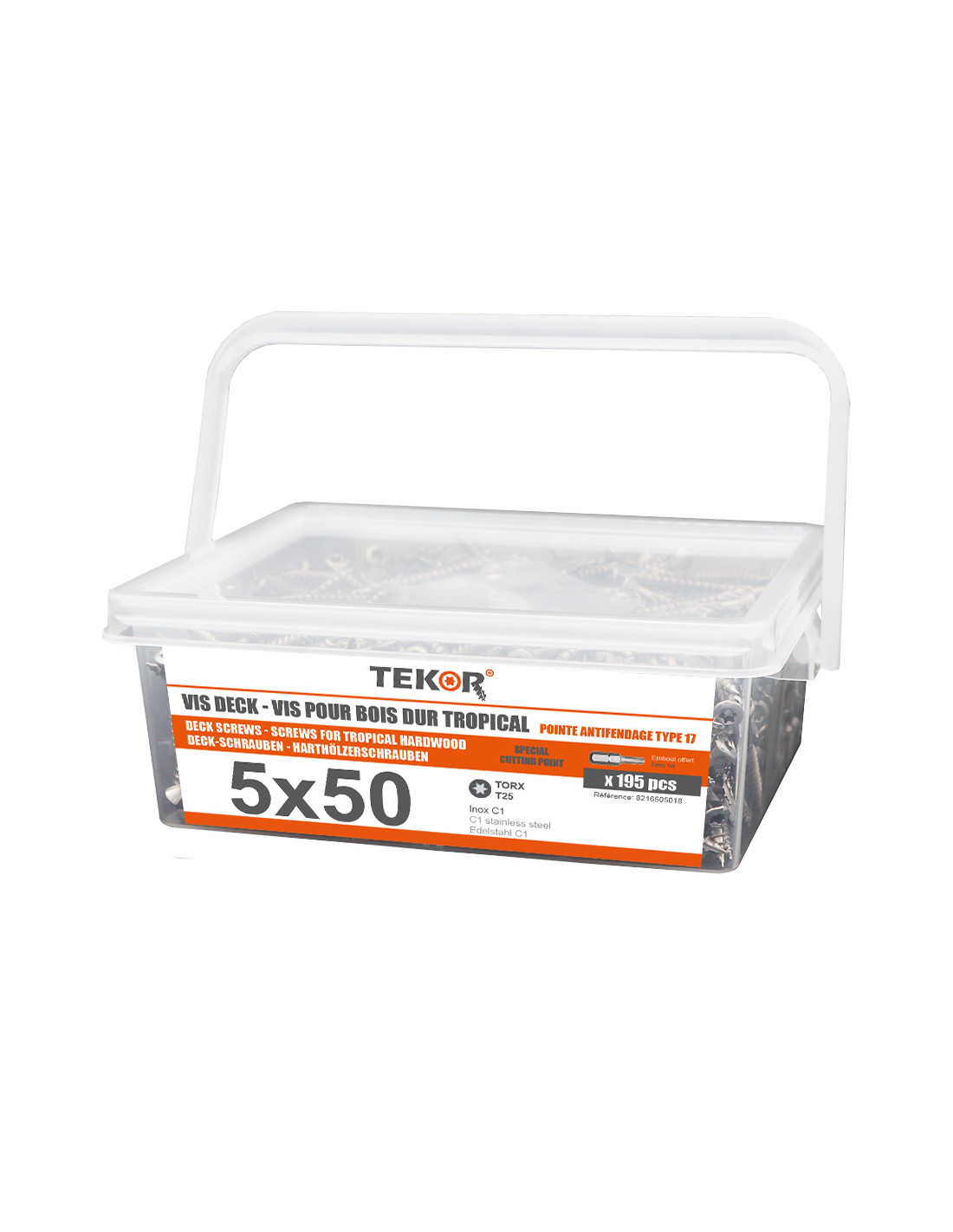 1 x Bucket of 195 Decking Screw 5X50 cut Type 17 Drilling Point Stainless Steel C1 AISI 410 Countersunk Head T25