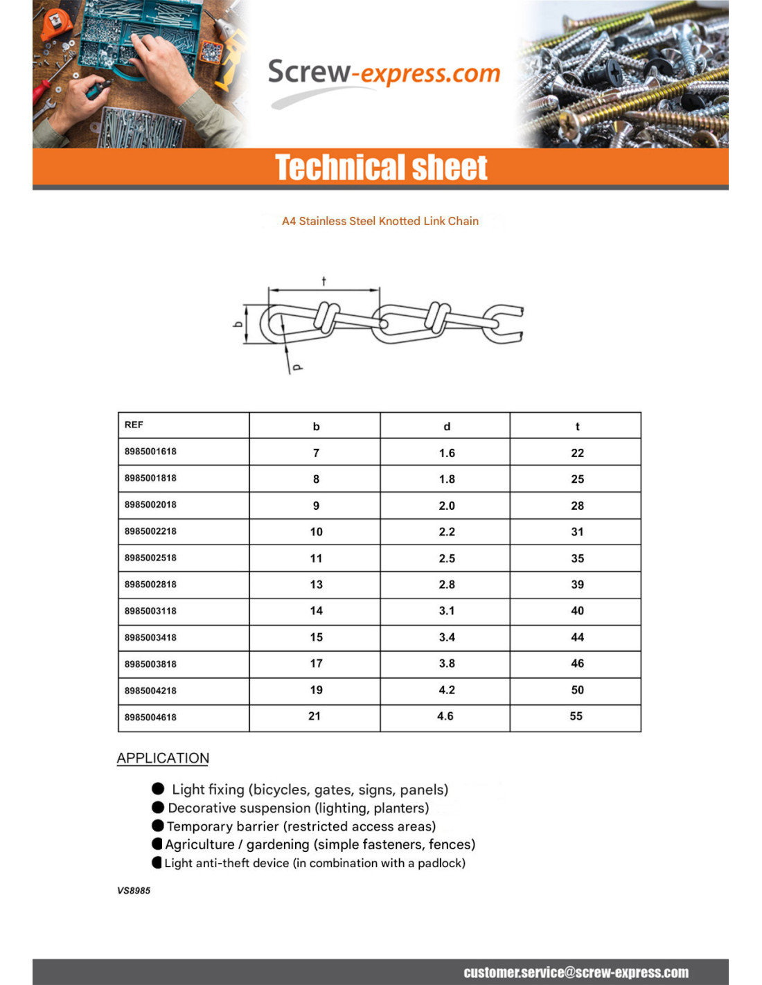 M Chain to LINK NEW Diameter 2.0 Stainless Steel A4 (Sold By Meter)