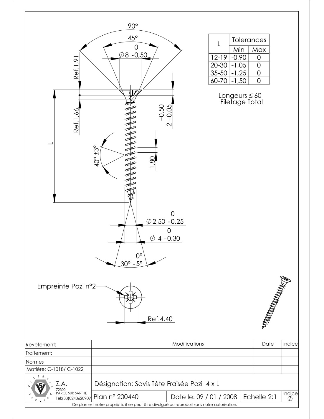 Chipboard Screw Countersunk Head Pozi Full Thread