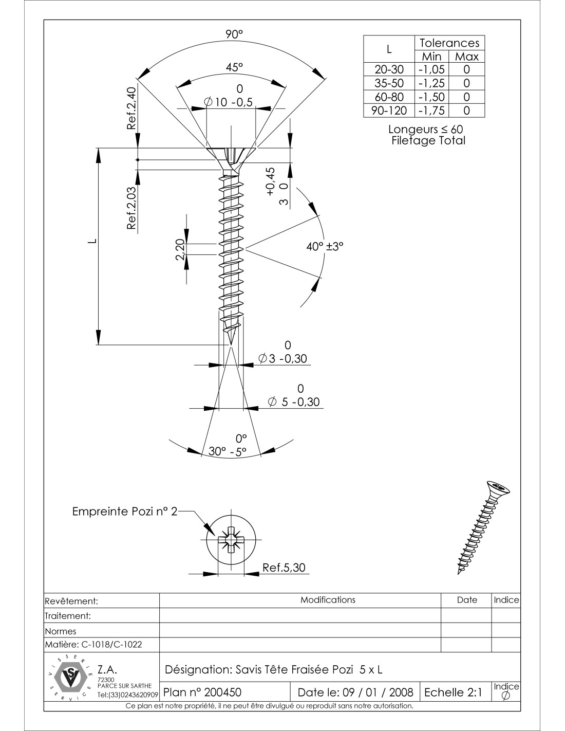 Savis Chipsboard Screw Countersunk Head Pozi 2 5X50 Full Thread Black Zinc Plated Other Reference : 3663072009141 V2004505006Z 1611028 EV13 2240744