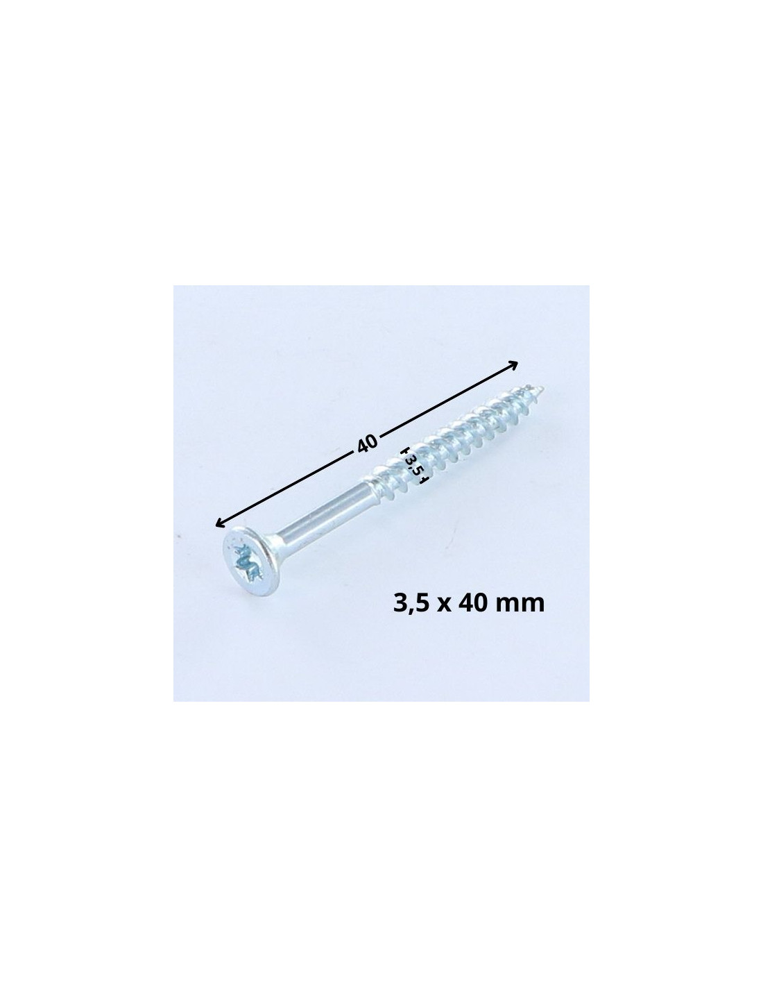 Diameter = 3.5, Length = 40, Coating = ZINGUE White, Sub Product Family = Countersunk Head, Material = Steel, Drive Type = Torx, Product Family = Wood Screws, Size Drive Type = T10