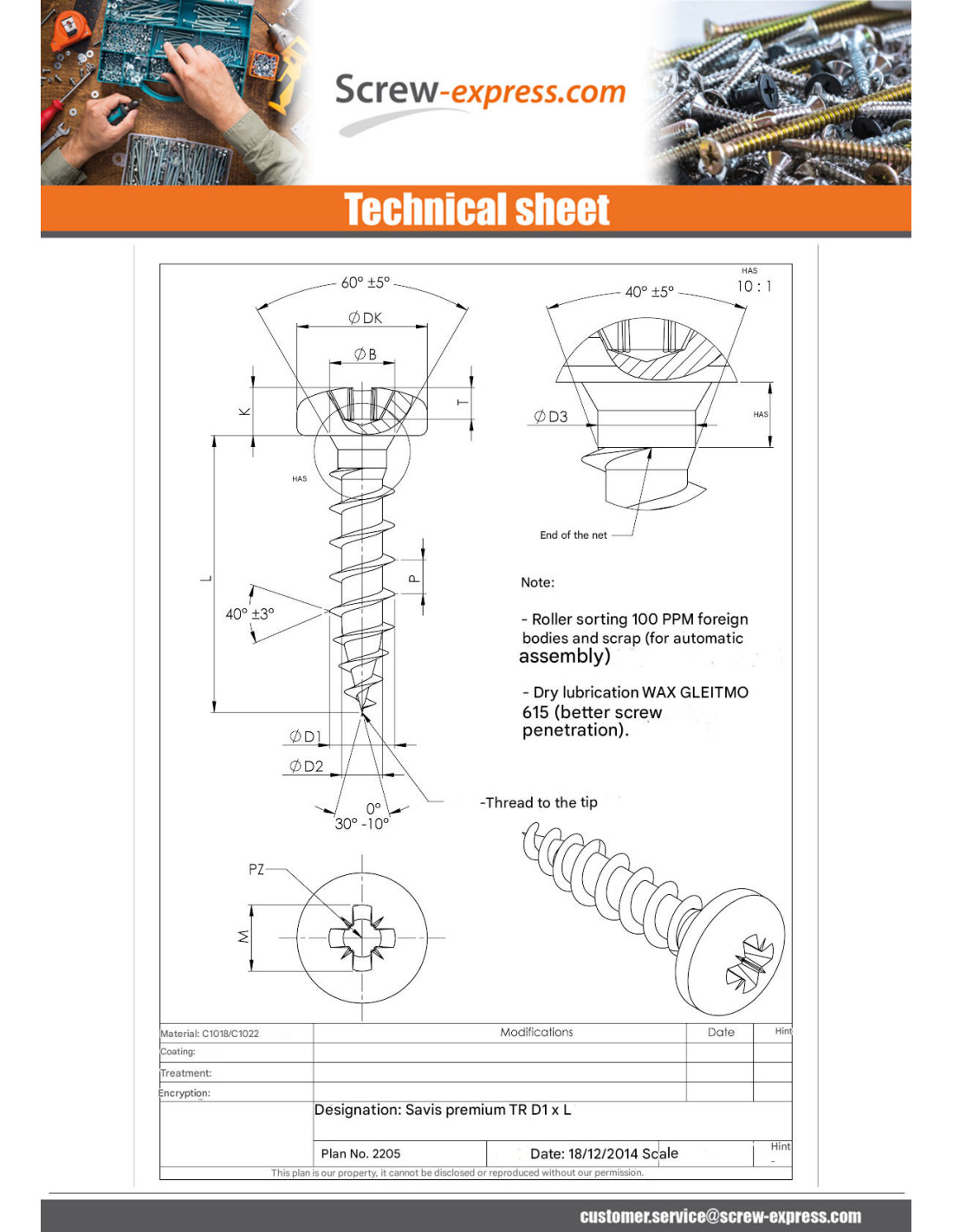 1 x Savis Chipsboard Screw Premium Round Head Pozi 2 4.5X40 Zinc Plated