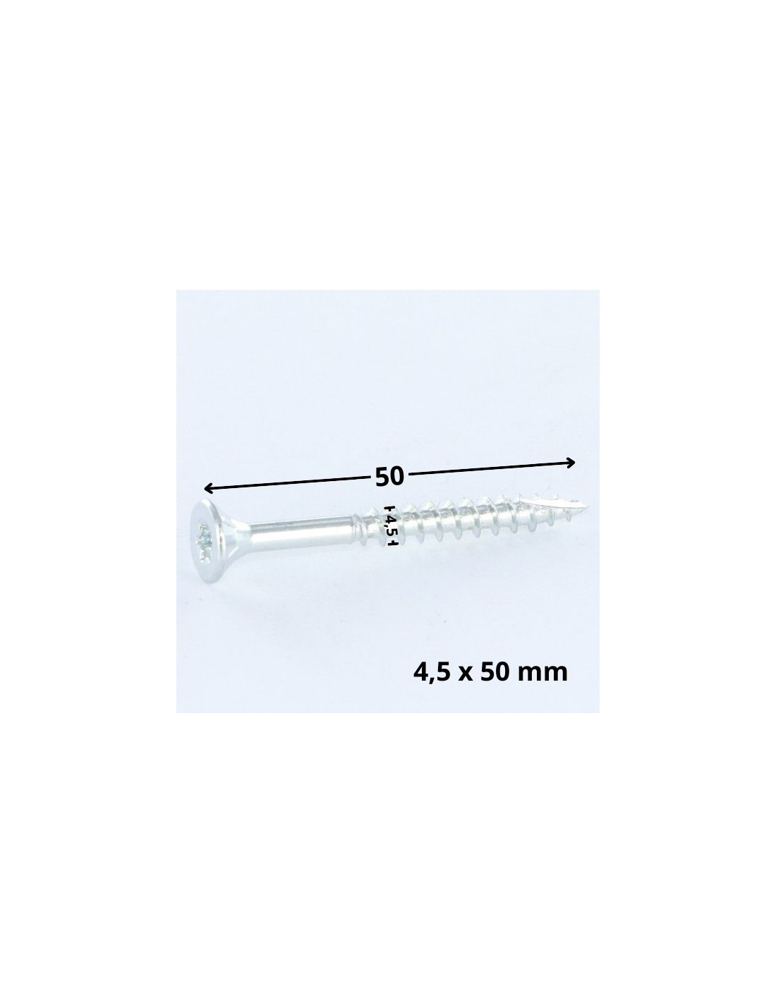1 x Chipboard Screw Tekor Countersunk Head With Serration 4.5X50 T25 Zinc Plated cut Type 17 Drilling Point
