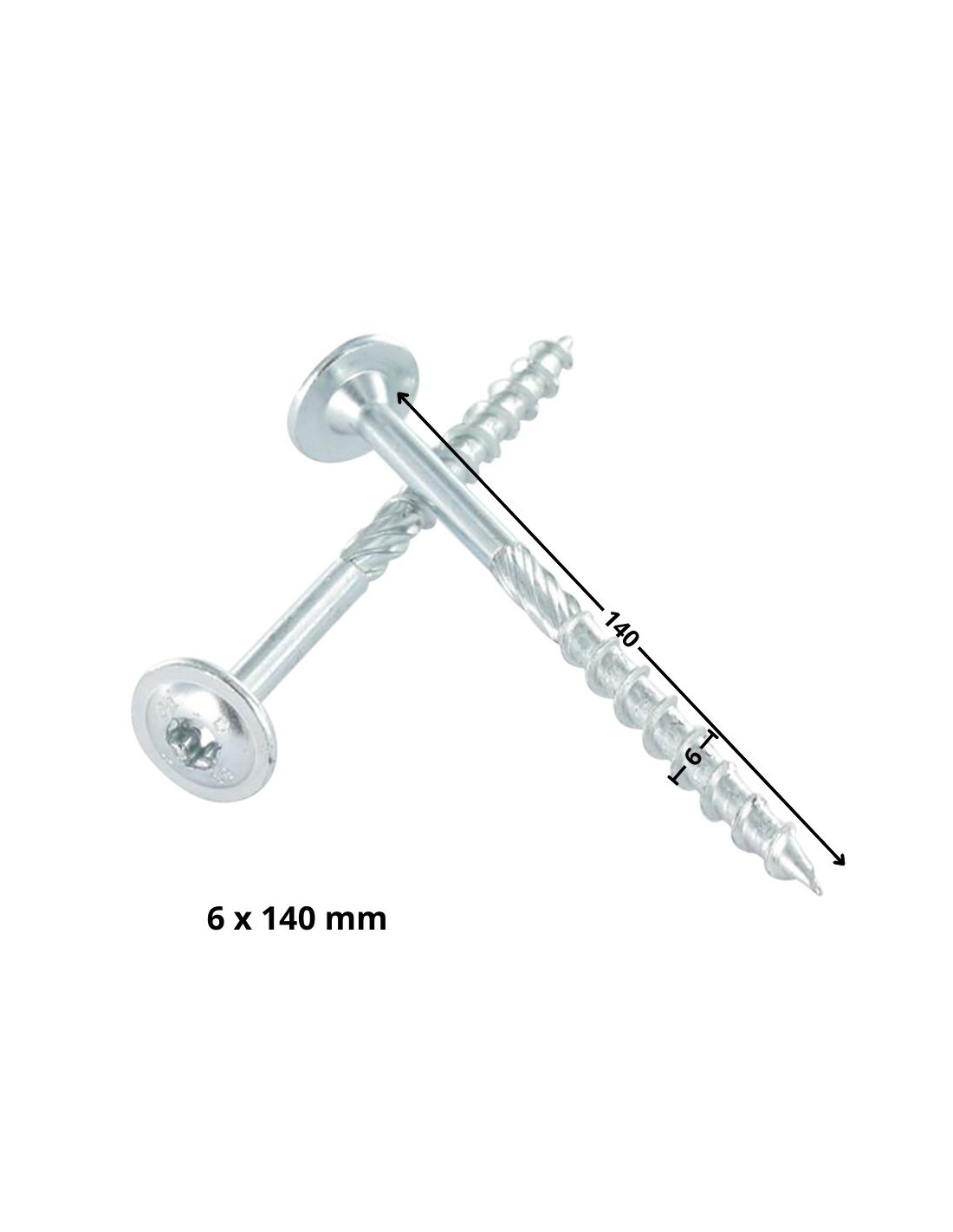 Screws for timber frame studs TEKOR T-shaped wood screws with TORX T30 disc, anti-splitting point type 17, 6x140, 70mm thread, zinc-plated steel