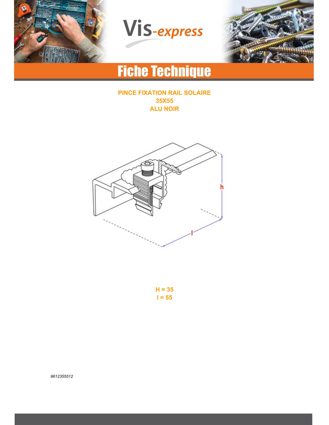 PLIERS fixation SOLAR 35X55 Aluminium Black Other Reference : 0ZPVKEAL00350 5410439157230