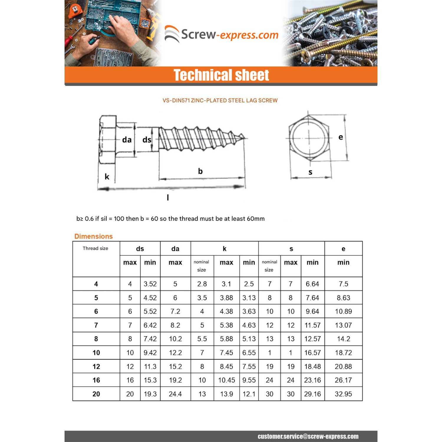 Coach Screws/Hexagonal Head Wood 7X120 Zinc Plated