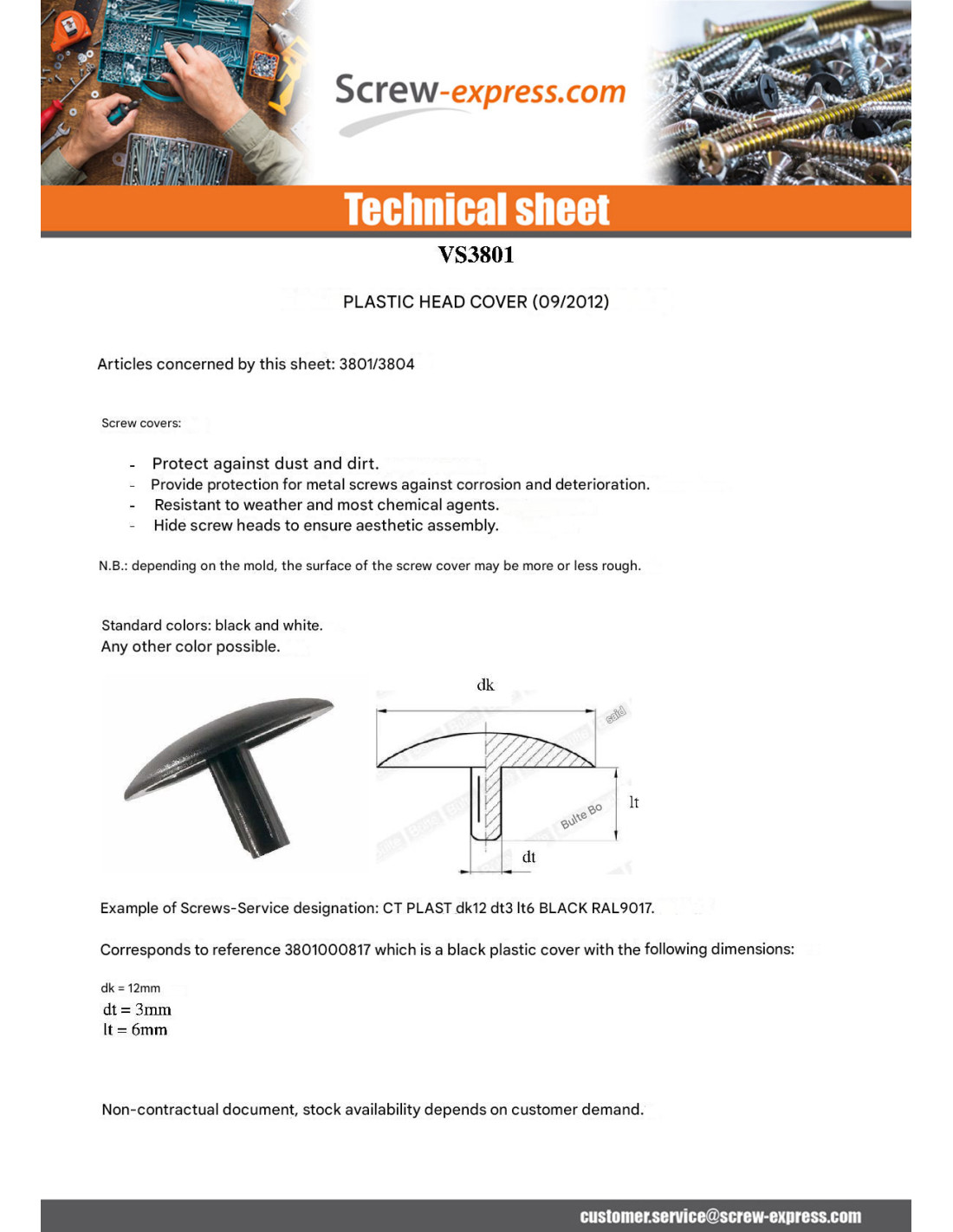 Cap Plastique Head Diameter: 12 DT 2.5 Total Lengh 5 Ral9006/White Aluminium Other Reference : 3663072180833 CA013