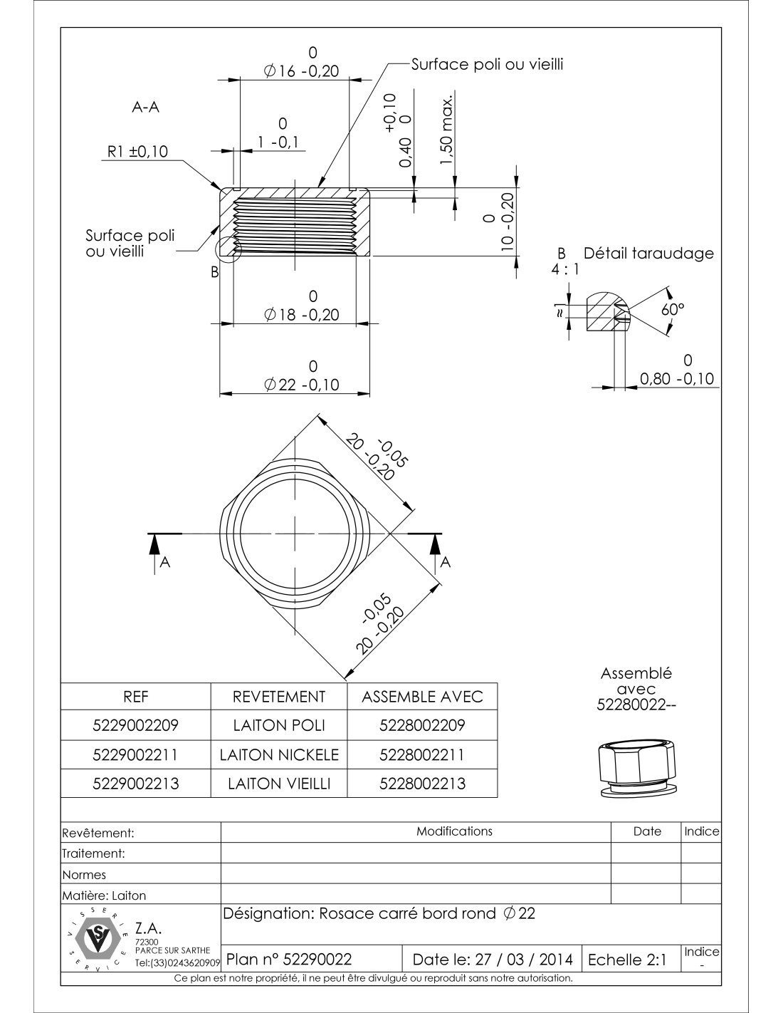 Cover Cap Square EDGE Round 22 Brass AGED Other Reference :