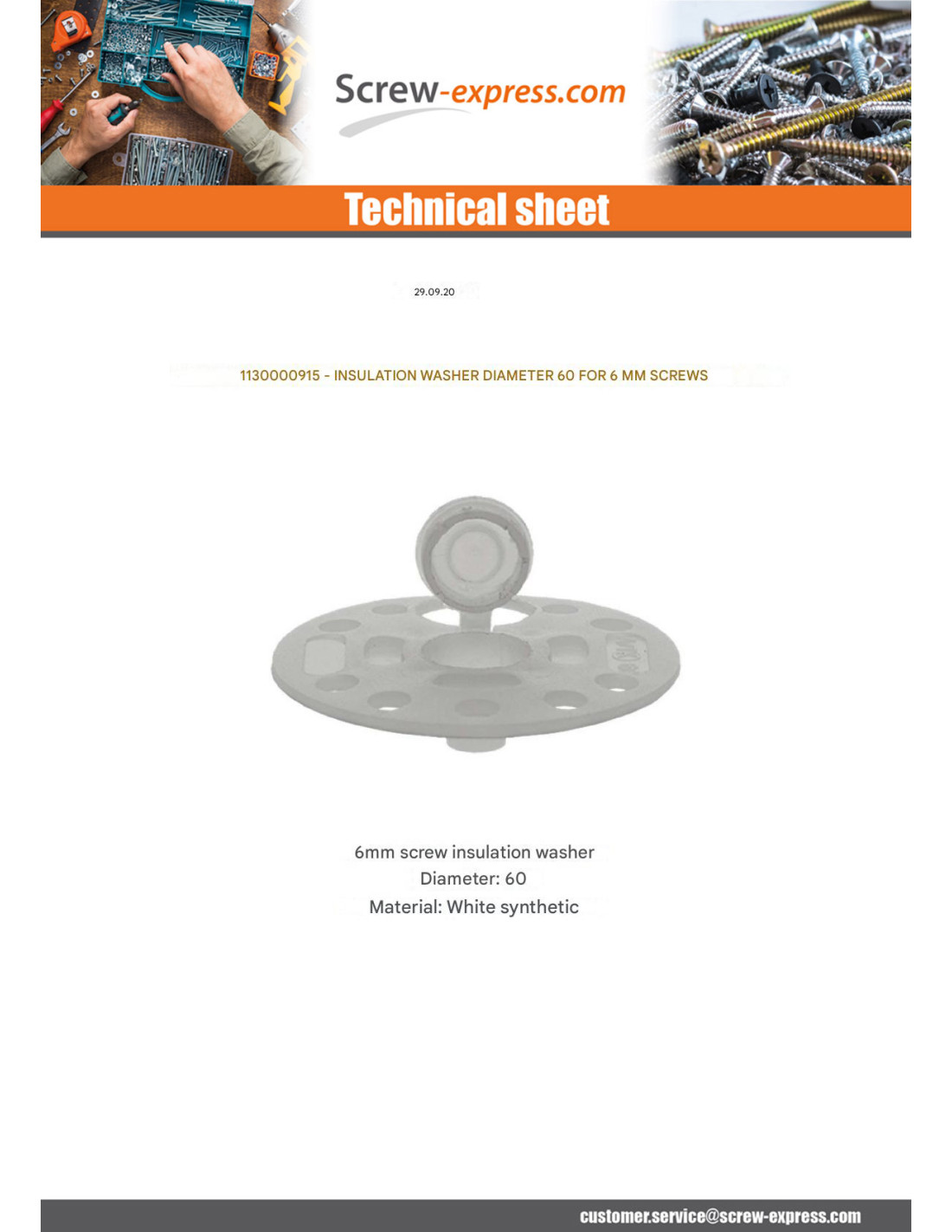 1 x Washer D INSULATION Diameter 60 Linch Pin Screw Of 6