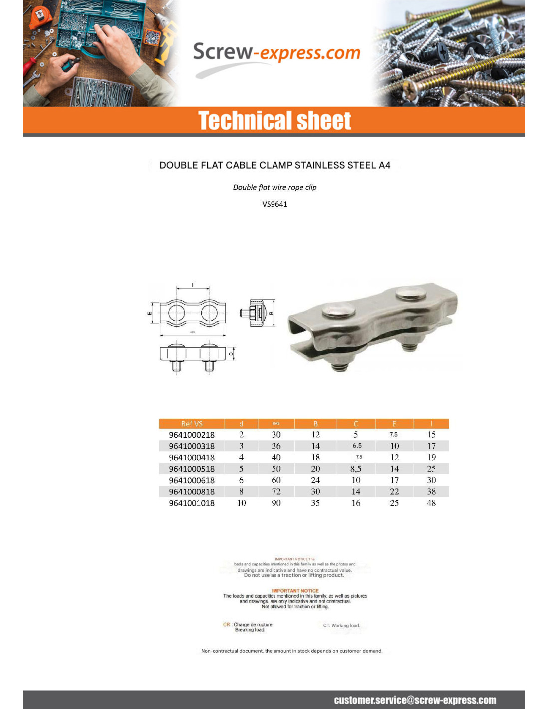 DOUBLE FLAT WIRE ROPE CLIP STAINLESS STEEL STAINLESS STEEL A4