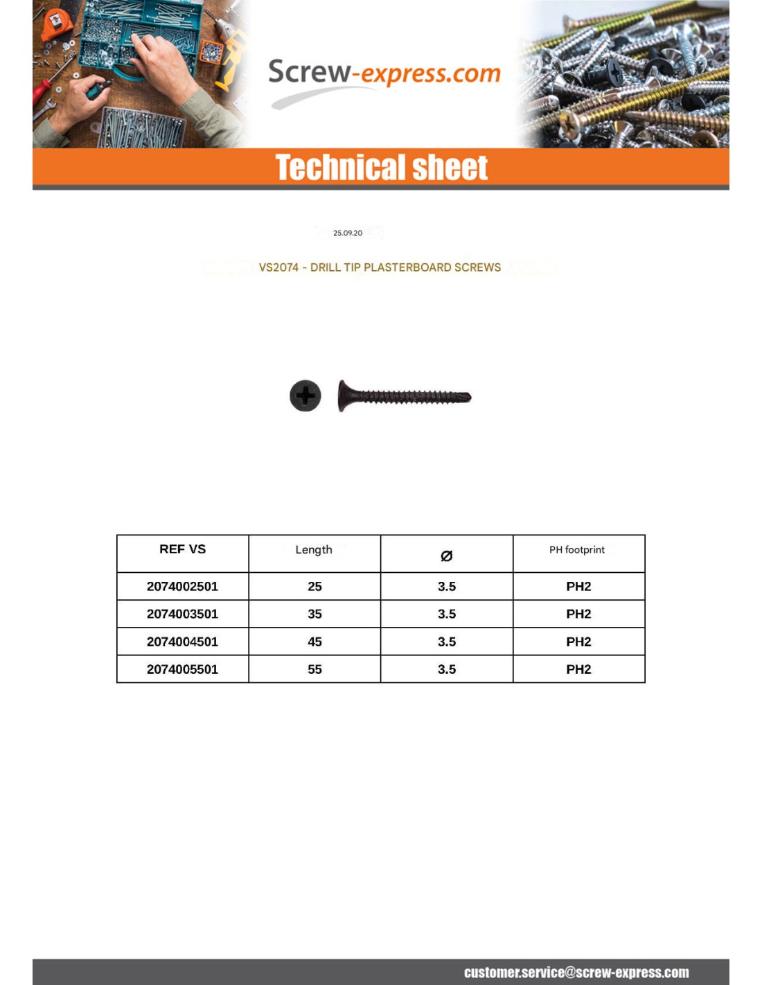 Drywall Screw For Point Self Drilling Phillips Of 2 3.5X25 Phosphated Plain