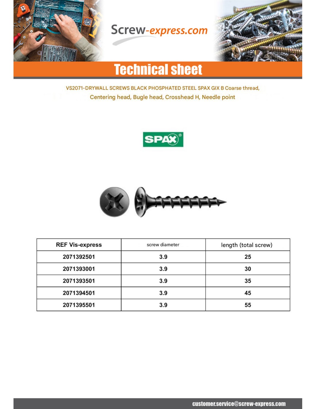 Drywall Screw Spax 3.9X25 Phosphated Plain GIX B