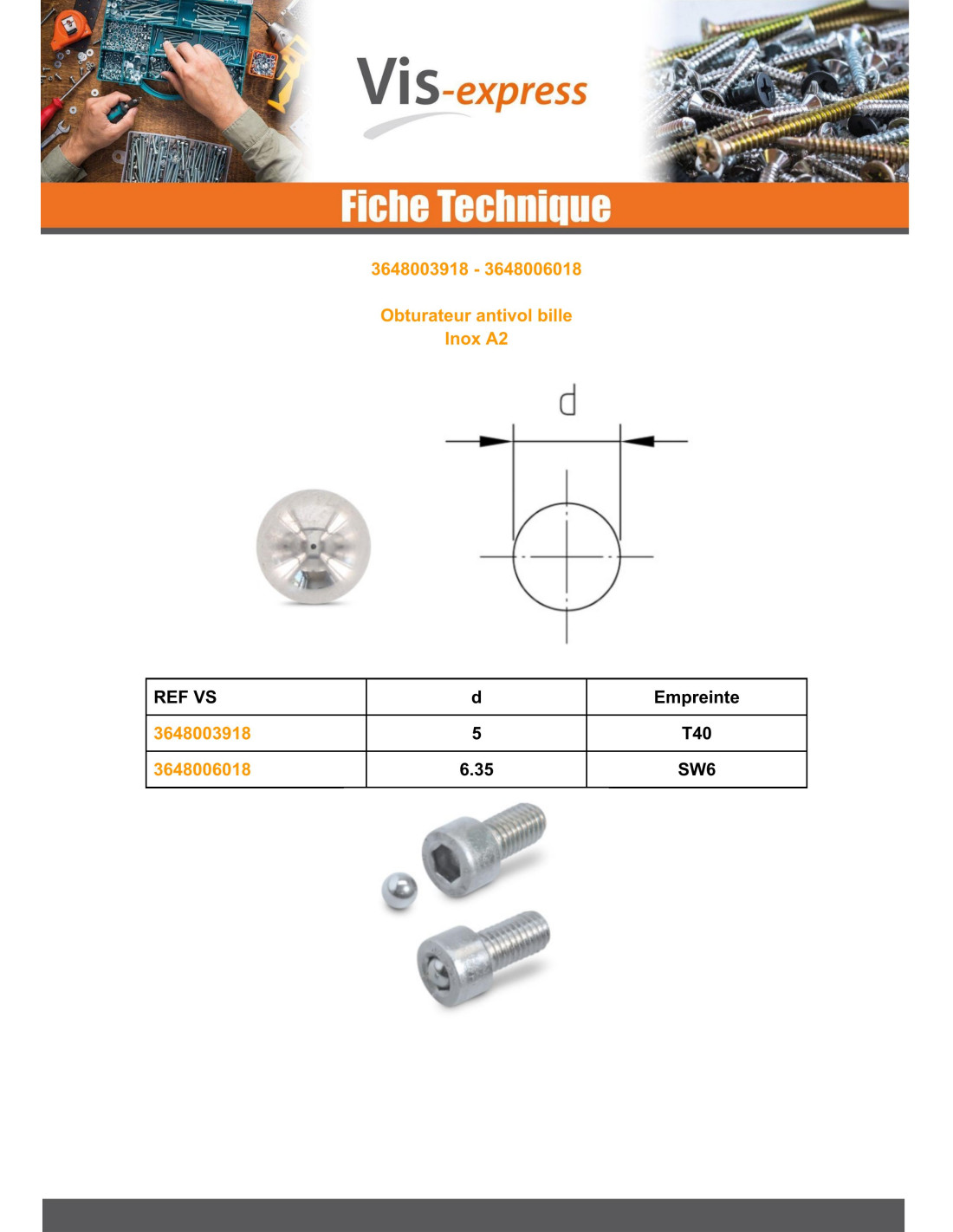 BALL ANTI-THEFT Linch Pin Drive Type SW6 Stainless Steel A2 Other Reference : 540126 3663072552678