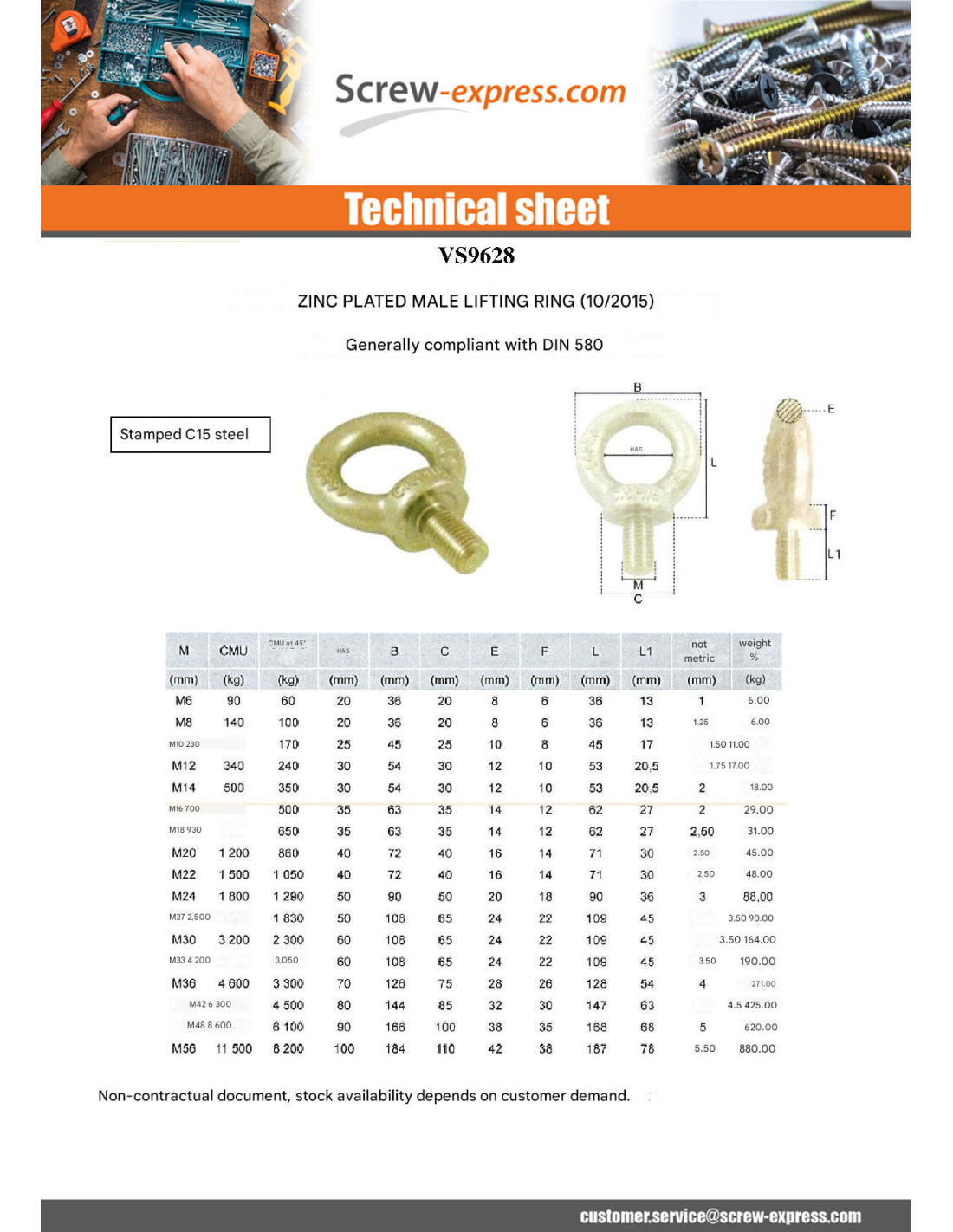 Eye Nut MALE M20 Zinc Plated Other Reference : 3663072361355 230008