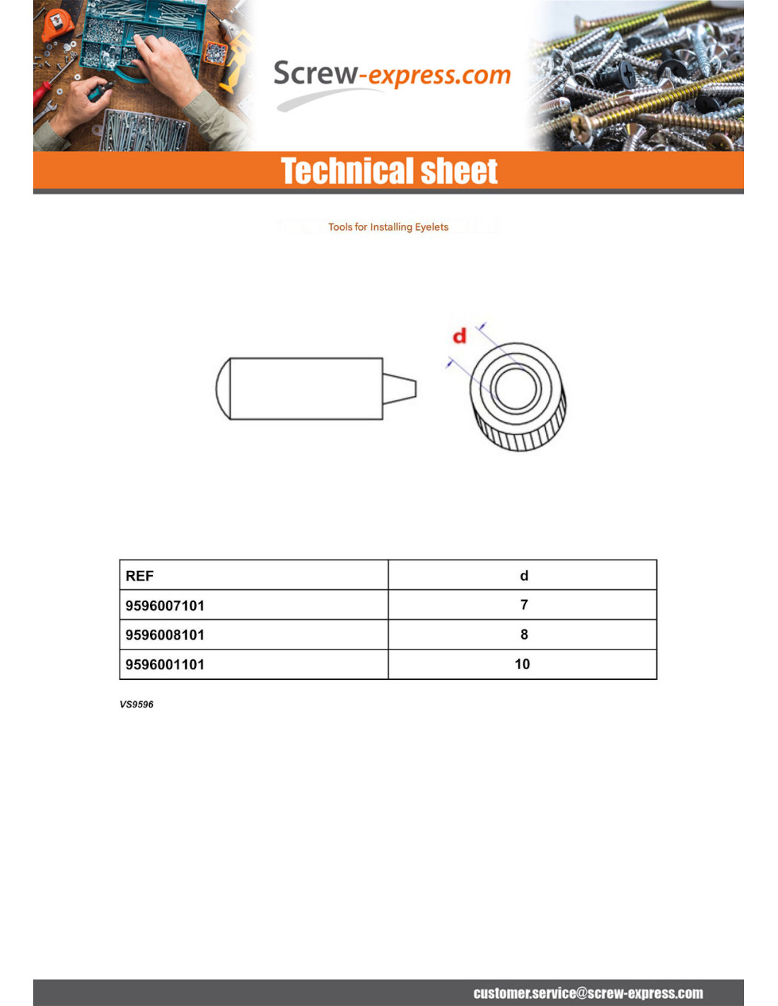 Installation Tools EYELET TARPAULIN Diameter 10 Other Reference : BM10ZR10W000 3663072563186