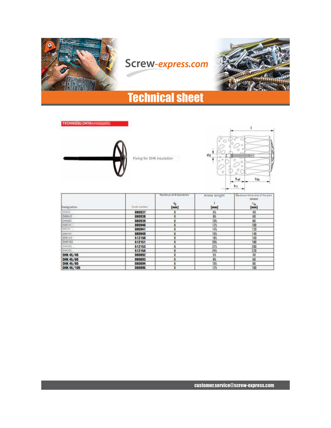 Fixation Fischer Linch Pin INSULATING DHK 120 Other Reference : 3663072460423