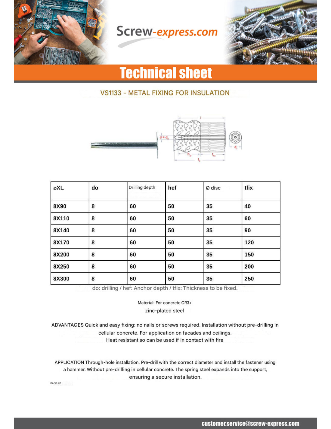 Metal insulation fixings ZN 8X300 Other Reference : SM0MIP0010803