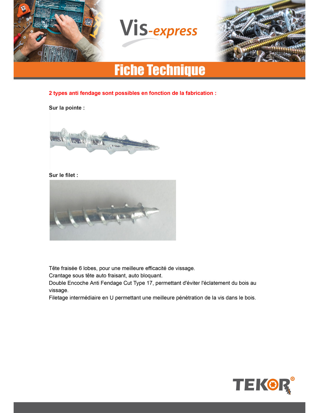 I use these screws in timber frame construction To fix 25mm thick battens, the partial thread of the TEKOR screws allows good tightening, the Torx imprint allows effortless tightening with the impact screwdriver