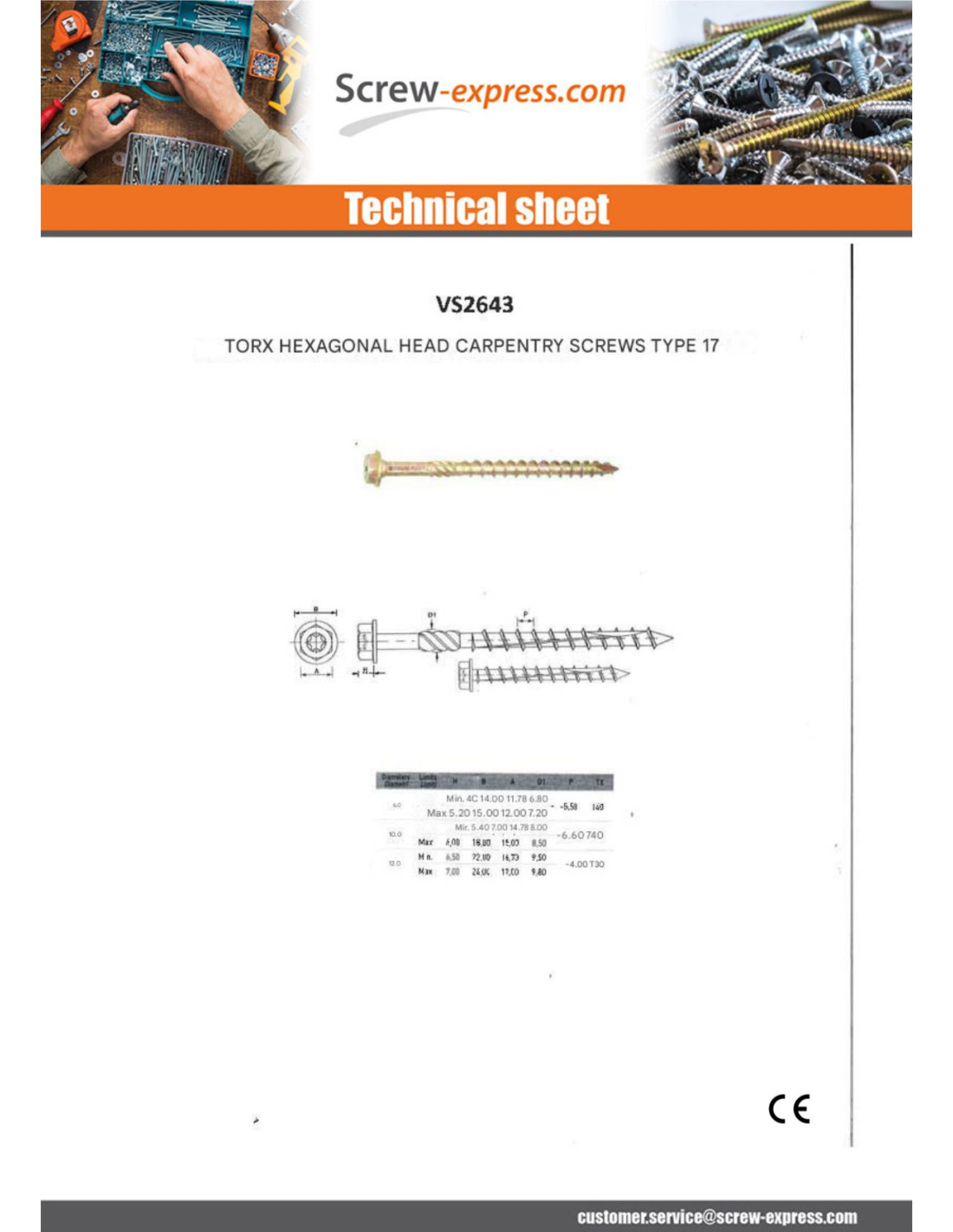 Framing screws TEKOR Hexagonal Head cut Type 17 Drilling Point Torx