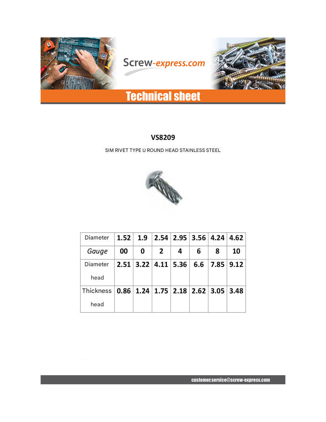 HAMMER DRIVE SCREWS TYPE U ROUND HEAD STAINLESS STEEL A2