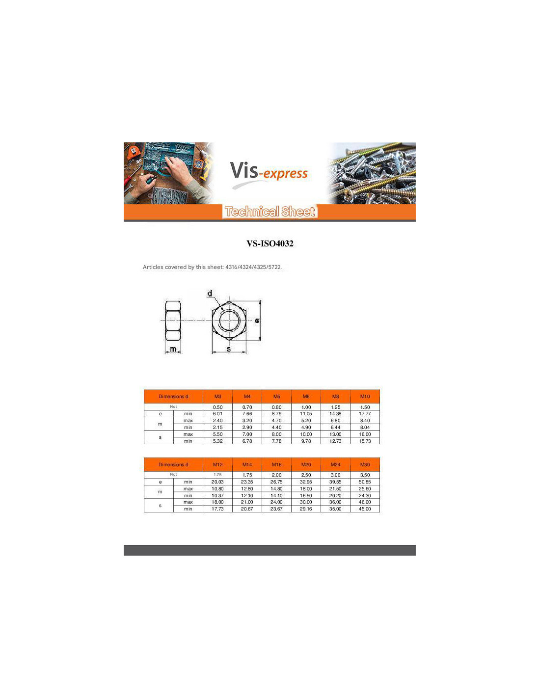 - NFE 24032 ISO 4032, VS-ISO4032, VS4325