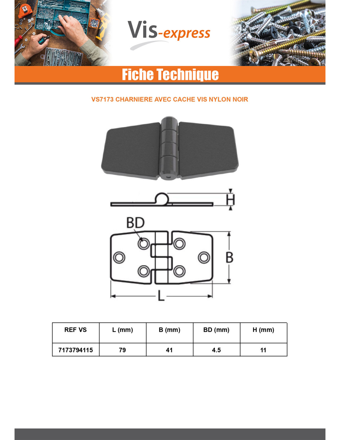 Hinge With Cover Cap Screw 79X41 black nylon Other Reference : 81473837941 3663072574649