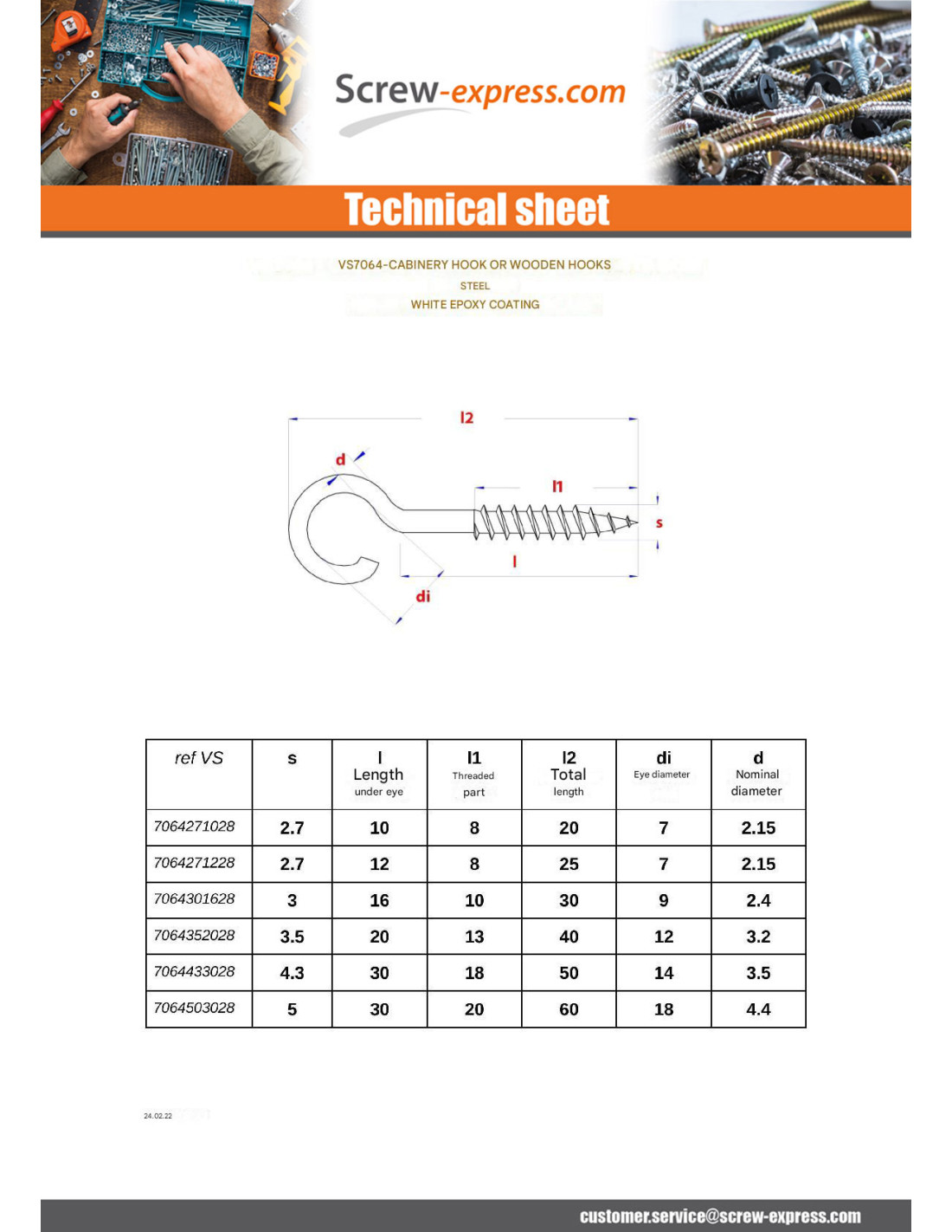 Hook CUPBOARD 4.3X30 Thread Length: 18 Total Lengh 50EPOXY White Other Reference : 0000SH0710350