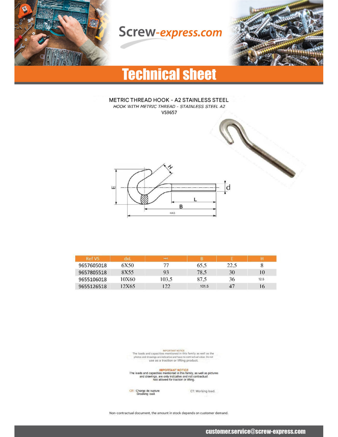 Hook With Metric Thread Stanless Steel Stainless Steel A2 A2 12X65