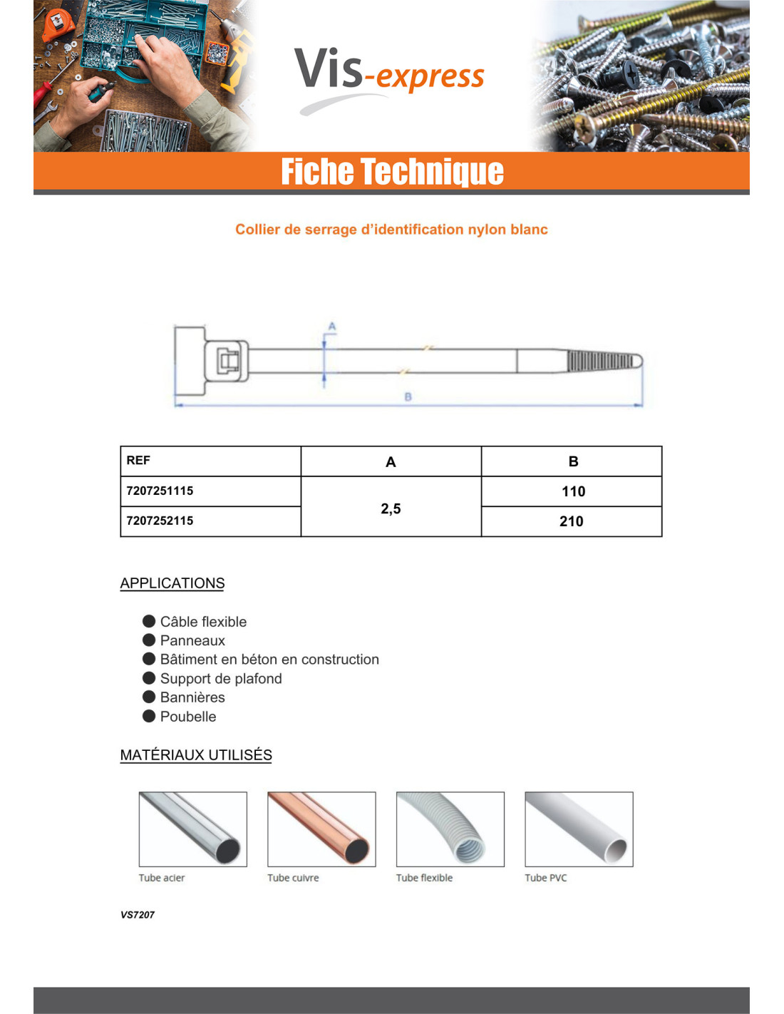Hose clamp IDENTIFICATION white nylon 2.5X110 Other Reference : BID25110 3663072569294