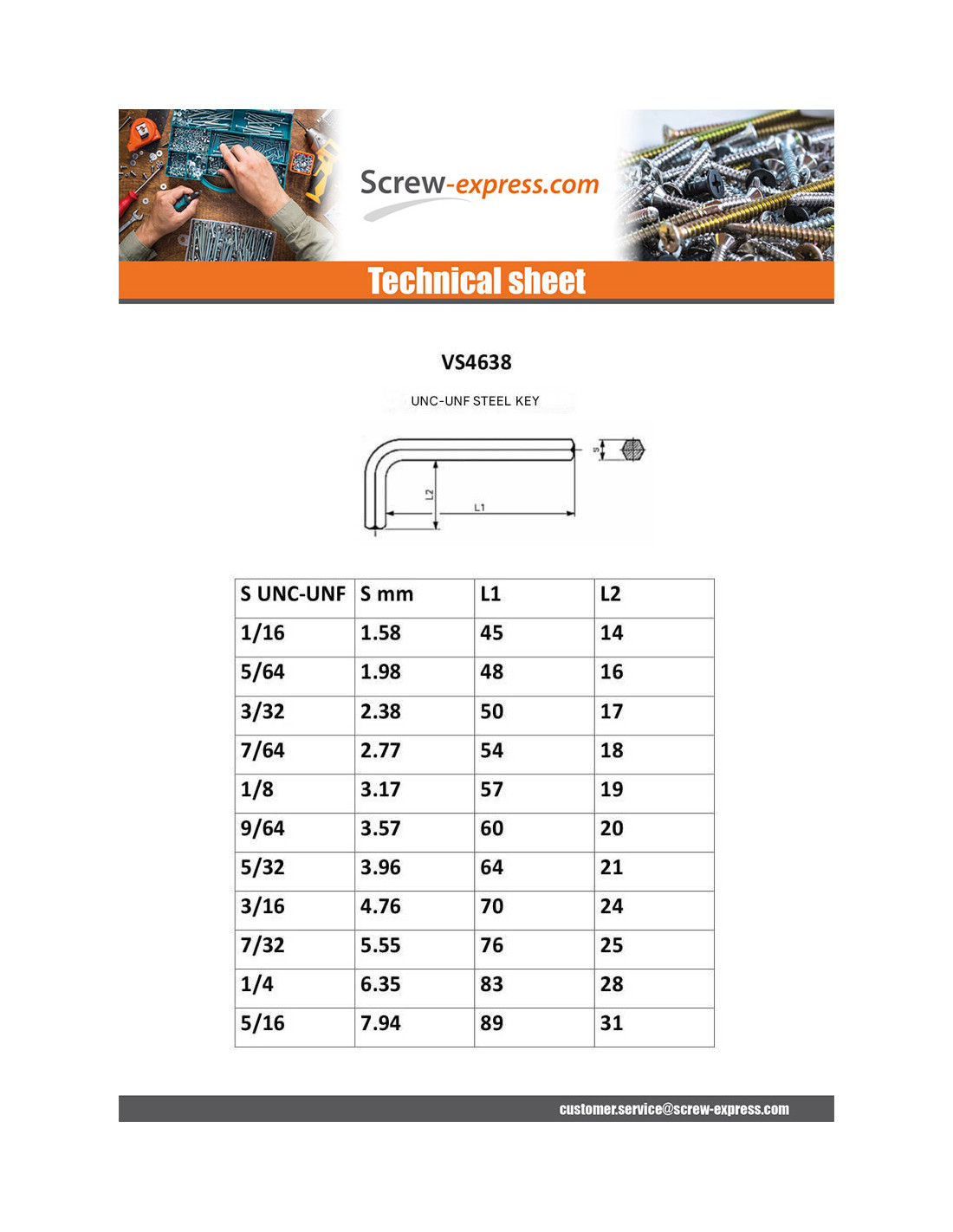 1 x Key UNC/UNF Steel 3/32