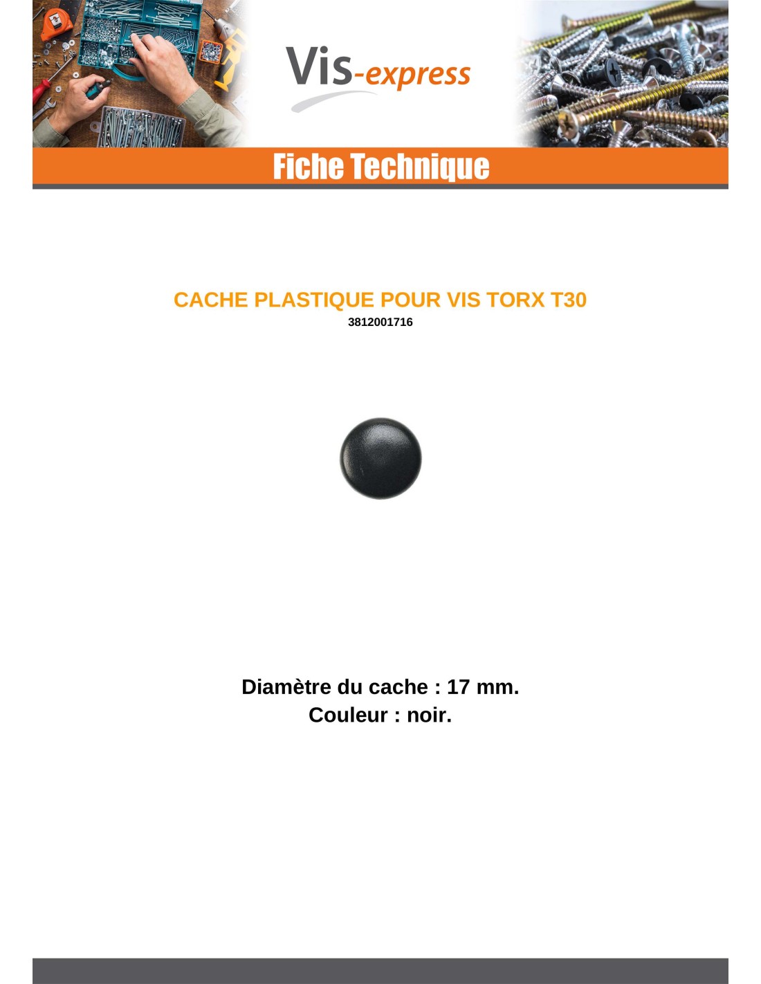 Material = Nylon, Drive Type = Torx, Product Family = Cover Cap, Size Drive Type = T30, Diameter Head = 17