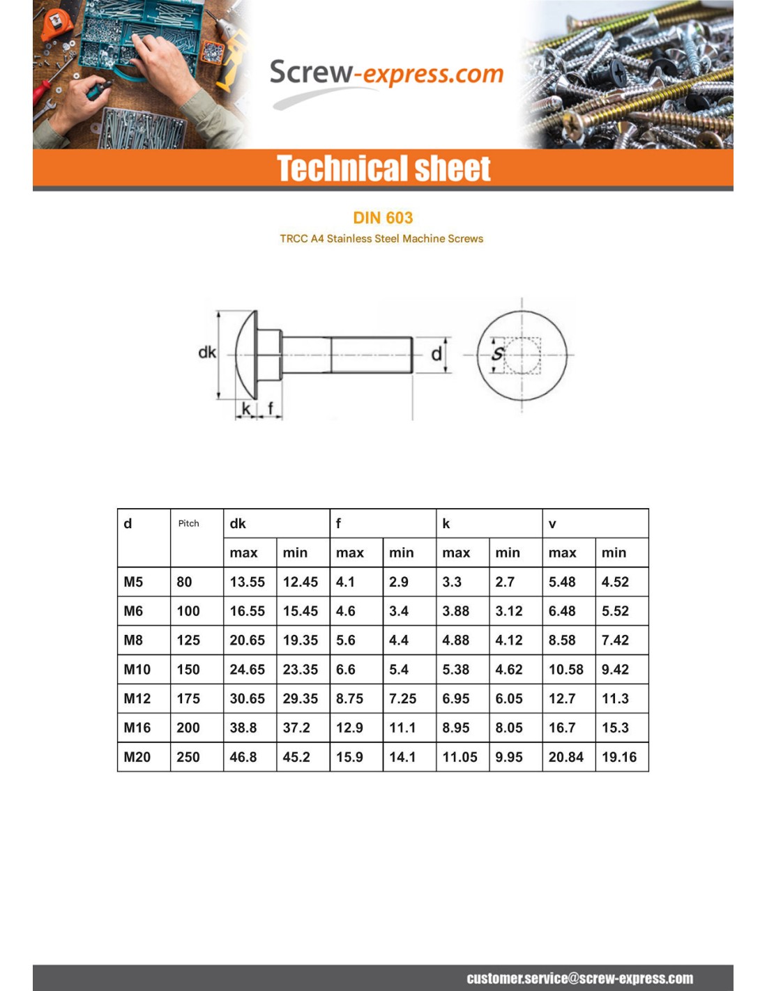 MACHINE SCREW CARRIAGE BOLT STAINLESS STEEL A4 DIN 603
