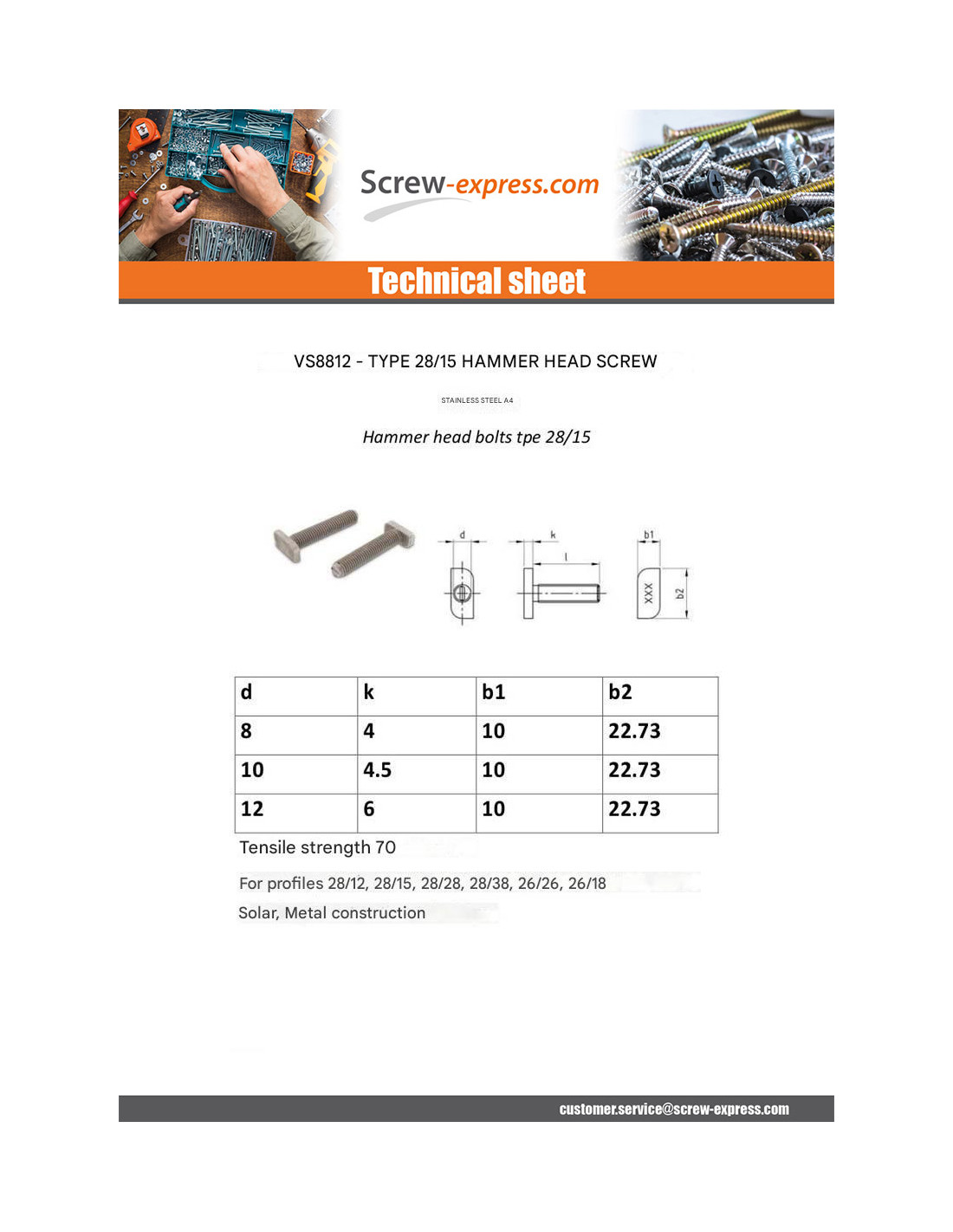 Machine Screw Hammer Head 10X10X4.5 M10X20 Stainless Steel A4 T28 / 15 Other Reference : 909741020