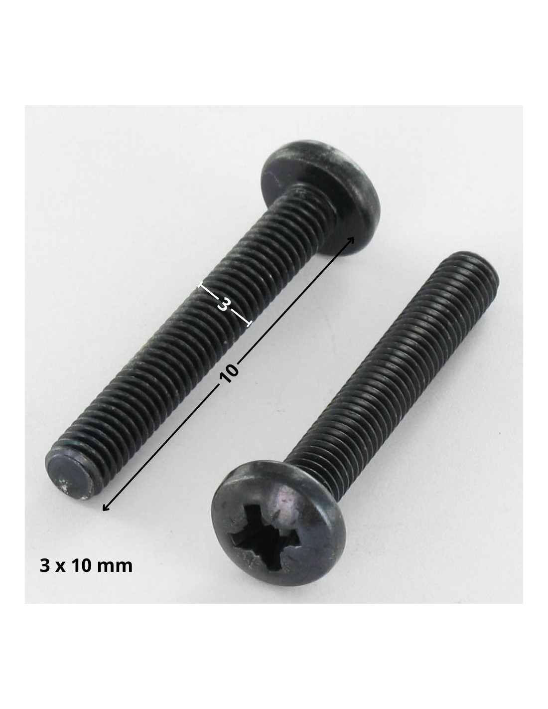 Diameter = M3, Length = 10, Coating = ZINGUE Black, Sub Product Family = Cylindrical Head Pan Head, Material = Steel, Pitch = Standard pitch 50, Drive Type = Pozi, Norm = DIN 7985, Product Family = Machine Screw / MICROVIS, Size Drive Type = Pozi N°1